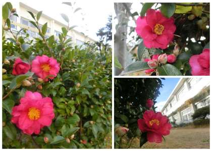 ただ本校では、鮮やかな色のツバキの花が、冬の寂しさを感じる景色の中に一段と映えて見え、元気を与えてくれているようです。