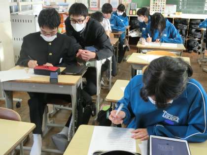 4月から現在までの学校生活の細かな部分まで振り返っていました。行事や学習への取組、日頃の生活で心がけてきたことなど、新しい年を迎える前に思い出していきます。