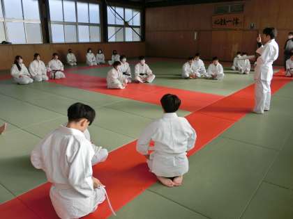 写真は、3年4・5組の体育・柔道の授業の様子です。手押し相撲を通して、安全な受け身を習得しようとしていました。仲間とこうして楽しそうに活動できる時間も少なくなってきました。