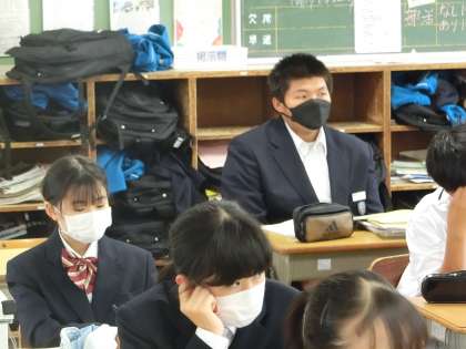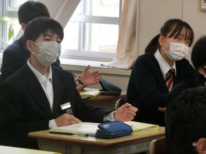 『「不便」の価値を見つめ直す』という単元で、「筆者の意見を要約してみよう」をテーマに学習が進められていました。まずは段落分けをしていきます。生徒それぞれの考えによって数パターンの意見が出てきました。段落分けのポイントを確認したのち、もう一度考え直していました。