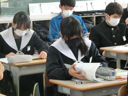 12/13 2-4 活用形を学ぶ 2 公開日 2023/12/13 更新日 2023/12/13 各学年から 昨日の2年4組の国語の授業の様子です。 ことばのきまりの学習で、「用言の活用」について学んでいました。6つの活用形(未然形・連用形・終止形・連体形・仮定形・命令形)を頭に入れ、練習問題に取り組んでいきます。グループで解答を確認し合っていました。