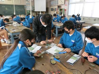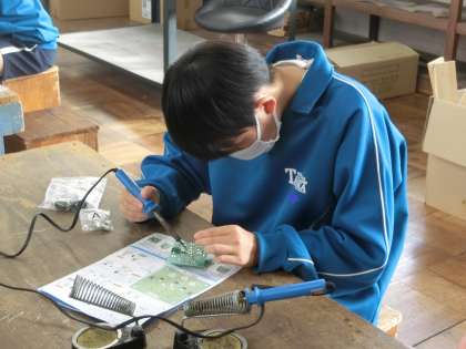 「キャンドルライト」の制作に取り組んでいました。細かな部品を回路の組み込み、はんだ付けをしていきます。最初は恐る恐る活動していましたが、次第に慣れてきて、「うまくいった!」とか「私って天才!?」などの声も聞かれるようになりました。出来上がった作品は、ぜひ家庭でも活用してほしいと思います。