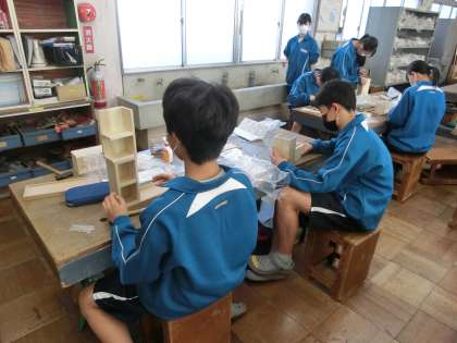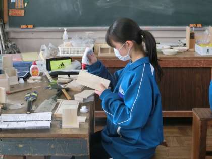 木製品づくりもいよいよ本格的になってきました。のこぎり以外にも電動の糸のこやベルトサンダーなども使っていきます。安全に作業するのはもちろん、仲間や先生への相談、自分で試行錯誤を繰り返しながらの作品づくりから、誰もが意欲的に取り組んでいる様子が伝わってきました。