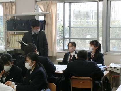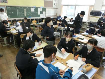 昨日、1年4組において数学の研究授業が行われました。数学部以外の先生方も多数参観し、授業者にアドバイスを送ります。