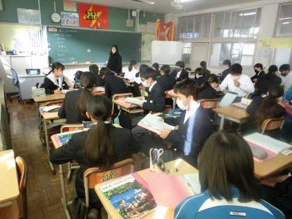 「遠足の持ち物を聞き取ろう」をテーマにペアを組んでの会話のやり取りをしていました。繰り返しの練習で次第にテンポもよくなり、また、答える内容のバリエーションも増えていました。こうした仲間とのコミュニケーションの場面も徐々に増やしていきたいと思います。