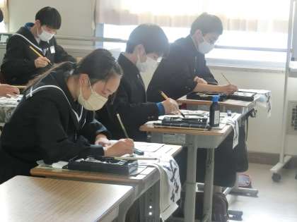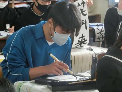 12/13 2-5 アドバイスも思い出して… 2 公開日 2023/12/13 更新日 2023/12/13 各学年から 2年5組の国語の授業の様子です。 書き初めの練習に励んでいました。先週の書道ボランティアのアドバイスを思い出しながらの練習です。同じ文字を繰り返し練習する生徒、名前を練習する生徒など様々です。手本に忠実に、一文字ずつ丁寧に練習していました。