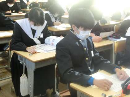 学習診断テストを明日に控え、直前の確認です。たんに応えや重要語句を覚えようとするのではなく、納得の理解で問題が解けるように工夫していました。