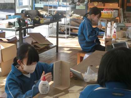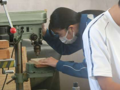 木製品づくりもいよいよ本格的になってきました。のこぎり以外にも電動の糸のこやベルトサンダーなども使っていきます。安全に作業するのはもちろん、仲間や先生への相談、自分で試行錯誤を繰り返しながらの作品に向かう姿勢から、誰もが意欲的に取り組んでいる様子が伝わってきました。