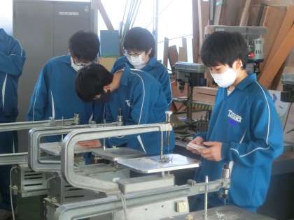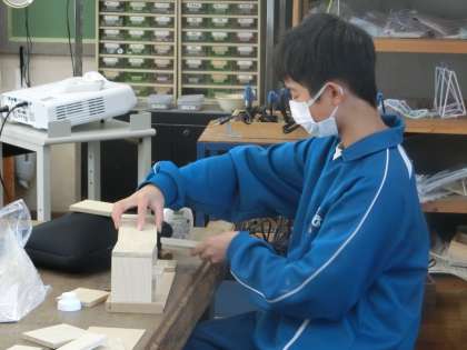12/13 1-4 形が見えてきた! 4 公開日 2023/12/13 更新日 2023/12/13 各学年から 1年4組の技術科の授業の様子です。 木製品づくりもいよいよ本格的になってきました。のこぎり以外にも電動の糸のこやベルトサンダーなども使っていきます。安全に作業するのはもちろん、仲間や先生への相談、自分で試行錯誤を繰り返しながらの作品に向かう姿勢から、誰もが意欲的に取り組んでいる様子が伝わってきました。