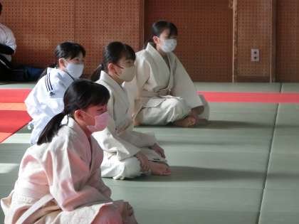 受け身をマスターするために、基本の練習に取り組んでいました。教科担任に説明されたポイントを意識して練習しているか、仲間同士で確認です。聞いたことを理解する、なカナに分かりやすく伝える、体で表現する… 学習に大切な一連の活動が、この授業でも行われていました。