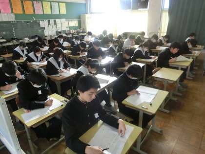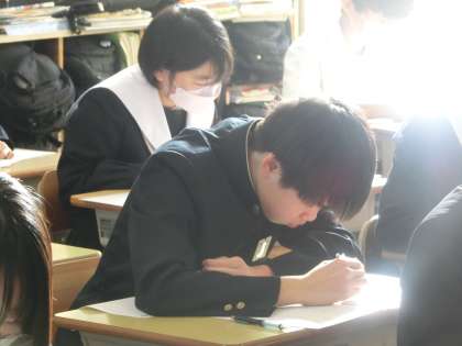 中学校生活最後の学習診断テスト・3年5組の様子です。