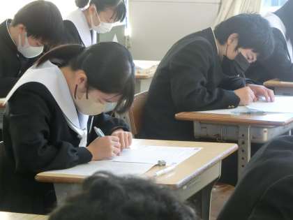 中学校生活最後の学習診断テスト・3年3組の様子です。