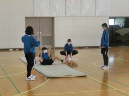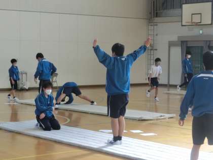 連続技の発表会に向けて、練習に取り組んでいました。大技の完成度を高めたり、スムーズな技のつなぎを考えたりしています。仲間と技の出来栄えを確認することで完成度を高め、アドバイスをし合うことで発表会に向けての練習意欲も高めていました。