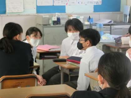 12/14 1-1 ALTとのコミュニケーション 2 公開日 2023/12/14 更新日 2023/12/14 各学年から 1年1組の英語の授業の様子です。 今回はALTとのコミュニケーションの授業です。答えてほしい単語に対してヒントを3つ。色や形、見た時の印象などを英語で伝えていきます。もちろん答えも英語。「これって何て言えば伝わる?」と仲間に助けを求めます。全員参加の活動に楽しさも乗っかり、非常に明るい雰囲気で授業が進められていました。
