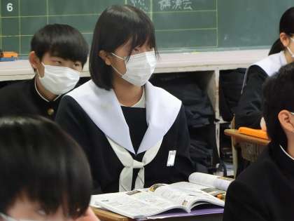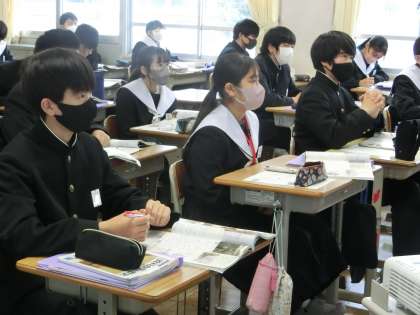 「産業革命は欧米にどんな影響を与えたのだろう」をテーマに学習が進められていました。映像を見る姿、教科担任の話を聞く姿勢からも分かるように、真剣に授業に臨んでいる様子が伝わってきます。