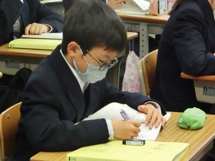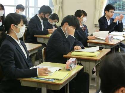 『「不便」の価値を見つめ直す』という単元で、「筆者の意見を要約してみよう」をテーマに学習が進められていました。まずは段落分けをしていきます。生徒それぞれの考えによって数パターンの意見が出てきました。段落分けのポイントを確認したのち、もう一度考え直していました。