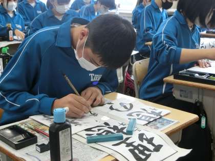書き初めの練習に取り組んでいました。筆の使い、ひと角ずつの角度などもしっかり意識して練習しています。心を静め、筆に思いを込める。美しい字を書くために最も必要なことを表現しているようでした。