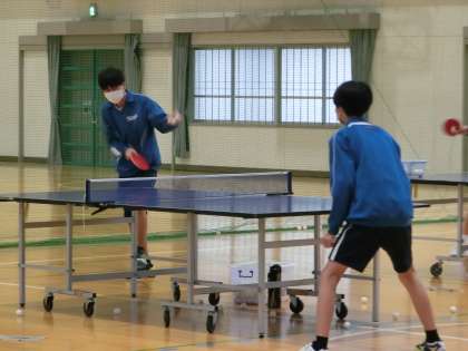 卓球部の校内練習の様子です。技術向上のために映像を見たり、グループやペアで声をかけ合ったりして、一生懸命練習していました。