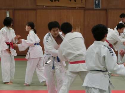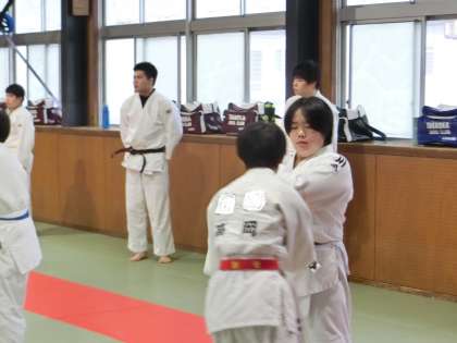 柔道部の校内練習の様子です。OBの高校生たちも練習に加わってくれていました。また高校進学後にも柔道を続けるため、3年生の姿もありました。