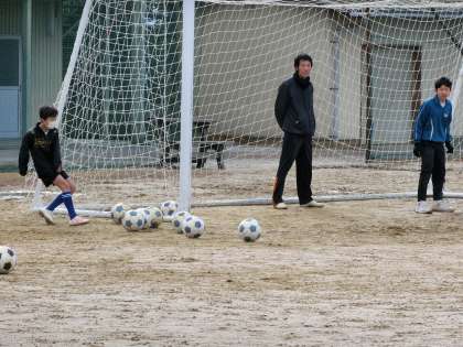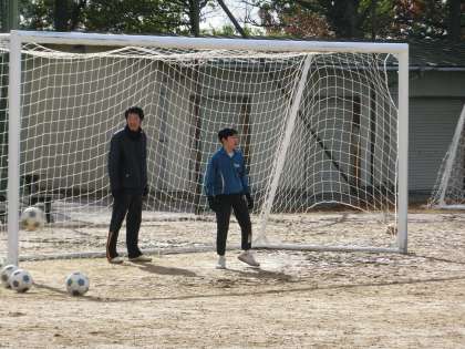 サッカー部の校内練習の様子です。この日は新しい地域部活動の指導者のとなっていただく方にも練習の様子を見ていただきました。寒さの中、元気に活動している生徒の様子に感心してみえました。