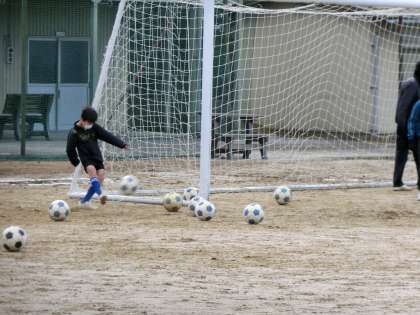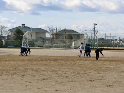 サッカー部の校内練習の様子です。この日は新しい地域部活動の指導者のとなっていただく方にも練習の様子を見ていただきました。寒さの中、元気に活動している生徒の様子に感心してみえました。