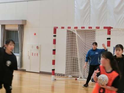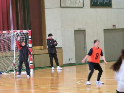 女子ハンドボール部の校内練習の様子です。たくさんの地域指導者の熱心な指導のおかげで、集中力を途切らすことなく、いつもどおりの笑顔ありで活動が行われていました。互いに声をかけ合うよい雰囲気に、見ていている側も楽しくなってきます。
