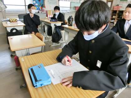 明後日に実施予定の「小中交流会(クリスマス会)」に向けてこれまで制作を続けてきたメッセージカードが完成しました。小学生たちの喜んでいる顔を思い浮かべると、その喜びもひとしおです。そして今の気持ちを俳句に残そうと頑張っていました。