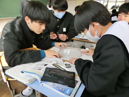 新しい単元に入り、天体の動きについて学習していきます。今回は「太陽の1日の動きには、どのような特徴があるだろうか?」をテーマに観察の準備が行われていました。透明半球に太陽の一日の動きを記録し、その特徴を調べていきます。