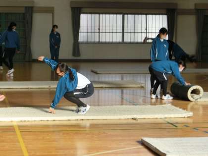 昨日の1年2・3組の体育・マット運動の授業の様子です。
