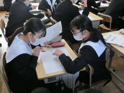 先日行われた学習診断テストの問題の解き直しに取り組んでいました。また、教科担任から入試への対策として解き方のポイントが解説されていました。