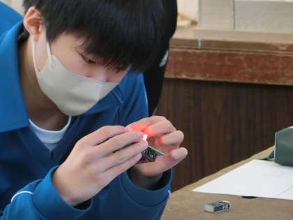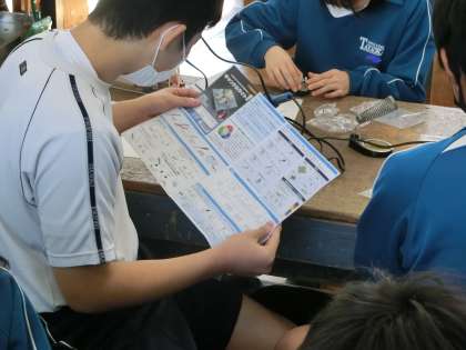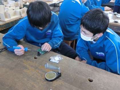 キャンドルライトづくりに取り組んでいました。細かな部品を間違いなく取り付け、適正な大きさではんだをつけて固定していきます。細かな作業も根気よく熱中して取り組んでいる様子が印象的でした。