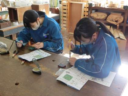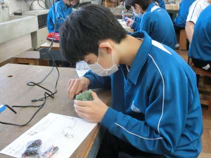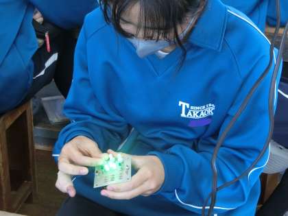 キャンドルライトづくりに取り組んでいました。細かな部品を間違いなく取り付け、適正な大きさではんだをつけて固定していきます。細かな作業も根気よく熱中して取り組んでいる様子が印象的でした。