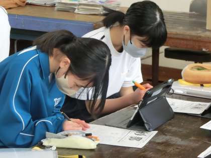 シンボルネームの作品づくりに向け、「自分を象徴するイラストを描こう」をテーマに活動が進められていました。「これぞ自分!」と思える名前のレタリングと象徴するイラストを描き込んでいます。出来上がりを想像しながら、集中して取り組んでいました。