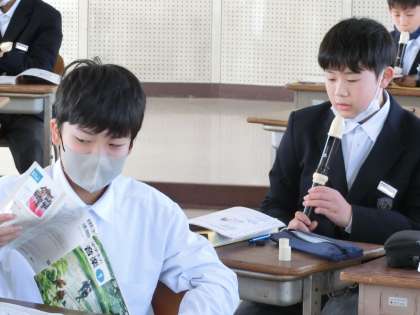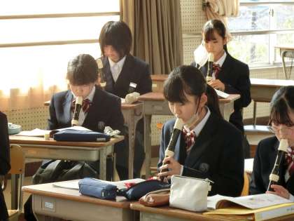 リコーダー演奏の練習に取り組んでいました。リズム、指使い、タンギングなど、いろいろな方法で演奏できるように頑張っていました。