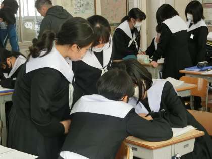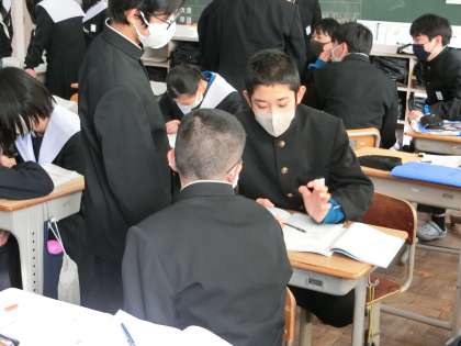 角の大きさを求める学習で、たくさんの演習問題を解いていました。学習してきたことを整理しながら、速く正確に求める方法を追究していました。