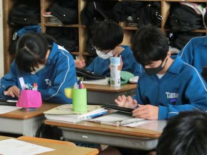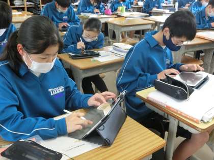 幼児の心の発達の単元で、「遊びが必要なのはなぜだろう?」をテーマに学習が進められていました。幼児期の遊びの必要性をしっかりと確認したうえで、どんな遊びが有効かを考え、タブレットにまとめていました。