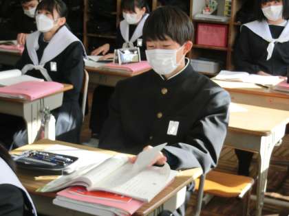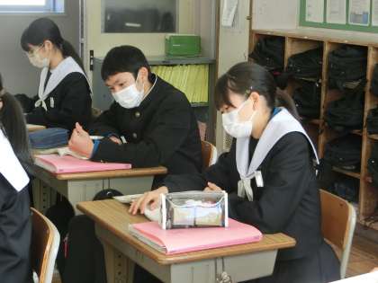 平家物語の「扇の的」の部分の学習で、対句、擬声語、係り結びを意識しながら、場面の情景、登場人物の表情や心情を読み取ろうとしていました。