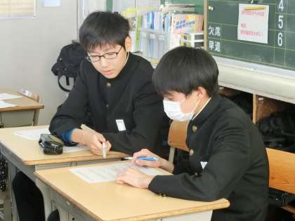 冬休み前の授業は今日が最終。つまり明後日の冬休みからは、家庭での個別の勉強が始まります。そこで今回は、冬休みの学習がより充実したものになるよう、仲間に解き方のアドバイスをもらっていました。
