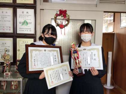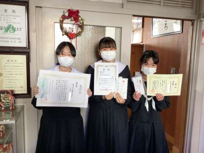 2限に行われた「冬休み前全校集会」で表彰伝達を受けた生徒たちです。