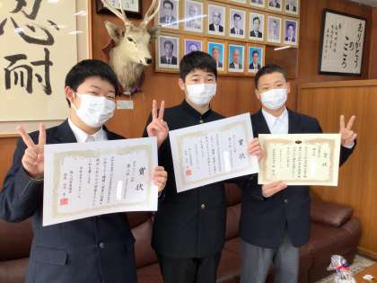 2限に行われた「冬休み前全校集会」で表彰伝達を受けた生徒たちです。
