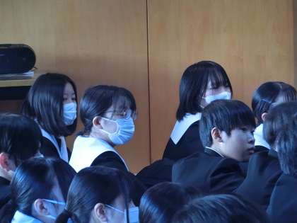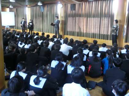 全校集会のあとに行われた3年生の学年集会の様子です。