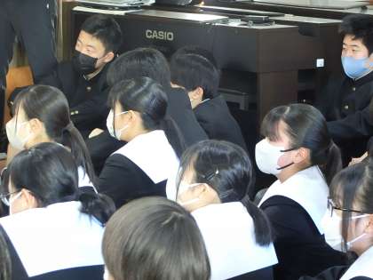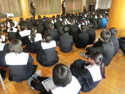 全校集会のあとに行われた3年生の学年集会の様子です。
