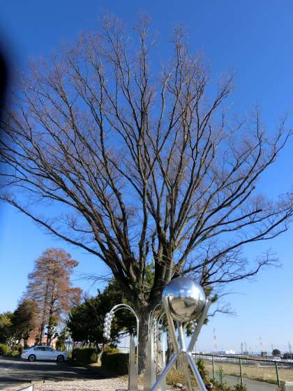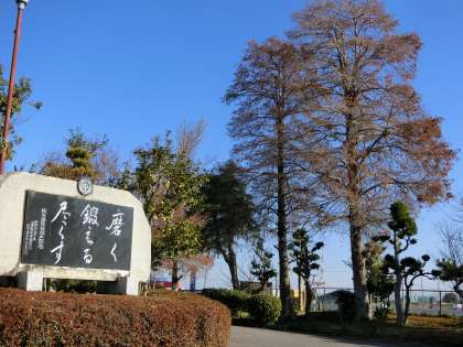 冬休み前の愛校活動(年末大掃除)までに大量の落ち葉を集めてくれた生徒たち。そのおかげで、冬休みに入った現在でも、校内はずいぶんきれいな状態が保たれています。見上げれば木々の葉はなくなり、冬の景色になっています。
