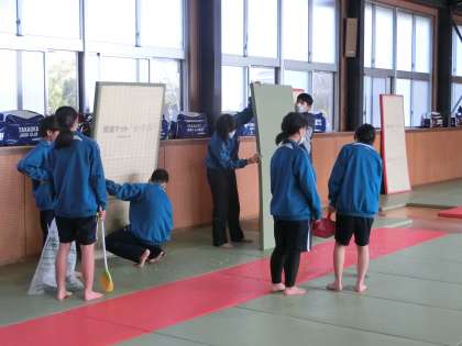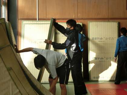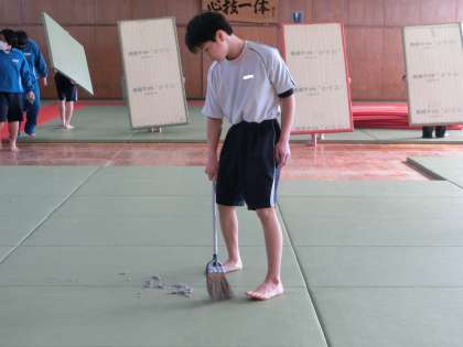柔道部の活動の様子です。今年最後の活動日を迎え、日頃の練習でお世話になっている錬成館の大掃除を行っていました。