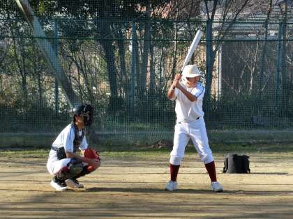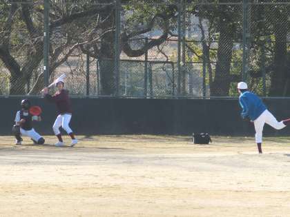 野球部の活動の様子です。顧問もチームに入り、紅白戦が行われていました。