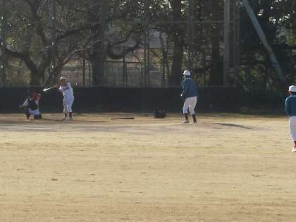 野球部の活動の様子です。顧問もチームに入り、紅白戦が行われていました。