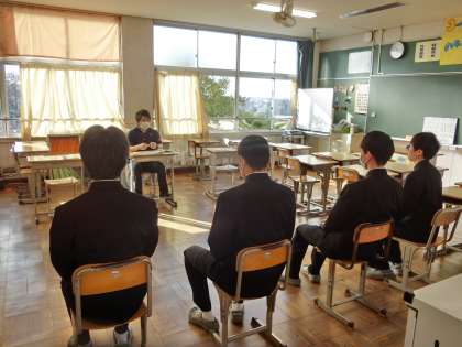 冬休み、1,2年生が部活動に励んでいるのに対して、3年生はもっぱら受験対策。入試の面接試験を控えた生徒たちが続々と学校にやって来て、その練習に取り組んでいます。