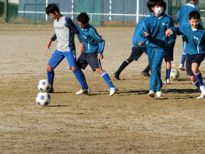 サッカー部の活動の様子です。初日から元気いっぱい、この日を待っていたという雰囲気で練習に取り組んでいました。