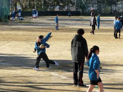 女子ハンドボール部の活動の様子です。今年初めての練習でしたが、これまでと変わらない明るい雰囲気で練習に取り組んでいました。また、地域指導者も熱心に指導してくださいました。