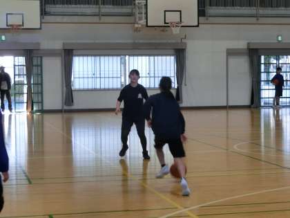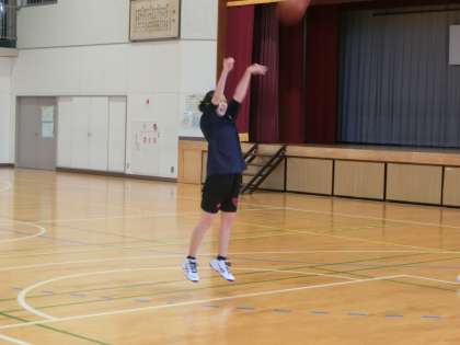 バスケットボール部の活動の様子です。正月休み明けですが、昨日に引き続いての練習です。今日は4名の小学生が参加し、いつも以上に活気のある練習になったようです。